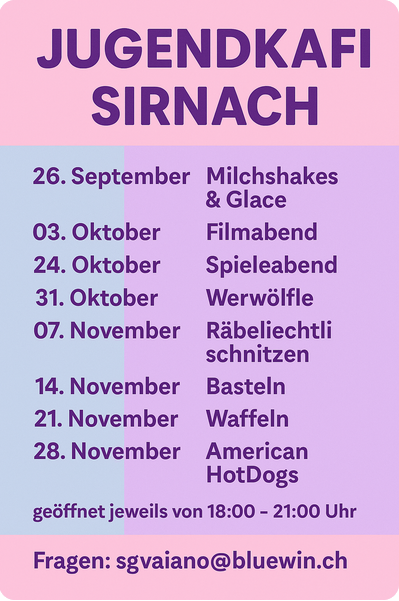 Dann bist du im Jugendkafi genau richtig! Dort kannst du dich mit anderen treffen, zocken, quatschen und einfach mal chillen.